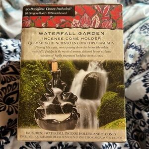AROMATHERAPY INCENSE WATERFALL GARDEN INCENSE CONE HOLDER CERAMIC WITH 20 back-flow cones included in the box with holder. When the burning incense is lit it resembles a waterfall as the smoke flows