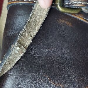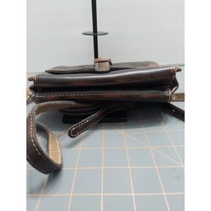 Pre-loved crossbody bag in great condition. Brass-tone hardware. Multiple compartments accordion style. Three compartments are separated by the zipper compartment. Three card slots. One zipper pocket to the back. Removable crossbody strap. Flap closure front buckle magnetic snap closure. Small stain inside the bag it doesn't affect the functionality of the bag. Bag was thoroughly cleaned and conditioned. There is repair made on the crossbody strap. Please see pictures. Comes from a smoke-free/clean home.