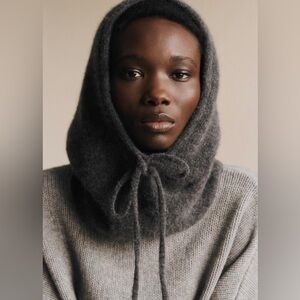 La Maille Sezane Côme Hooded Scarf in Charcoal Grey NWT✨