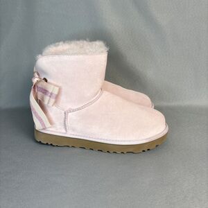 Women's Baby Pink or Shell Pink Bailey Bow Customizable UGG boots in size 7. They are in good condition with minimal wear and no longer made! They range from coquette, pastel, feminine, bohemian, boho, festival, Lana Del Rey, to Malibu vibe. Heart stopping, gorgeous color and style! Grab your unique, head-turning, dopamine pink, statement Uggs today! They are in very good condition and come with the box.