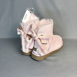 Womens UGG Boots Sz 7 Bailey Bow Customizable Pink Suede Festival Coquette Rare