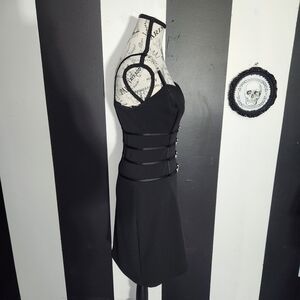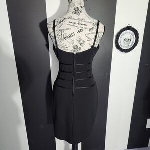 Elevate your style with this elegant black midi dress, featuring unique strap details for a modern touch. Perfect for any occasion.