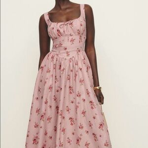 REFORMATION BALIA LINEN PINK FLOWER DRESS adjustable straps