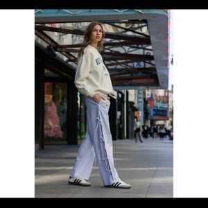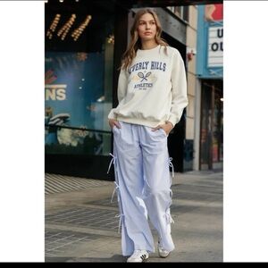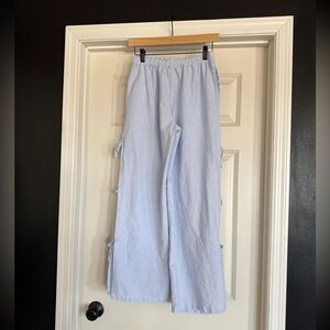 Cali 1850 Striped Side Tie Pull-On Cotton Pants - Light Blue Size Small