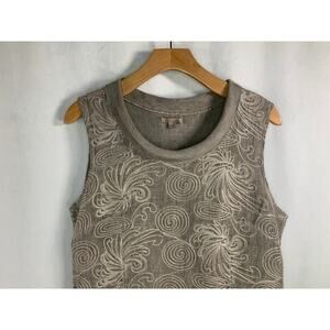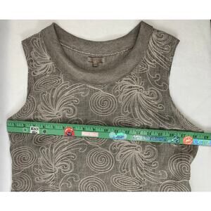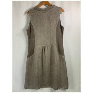 Lina Tomei Linen Embroidered Front Taupe Dress Pockets Classy Comfort Size L
