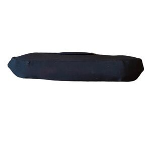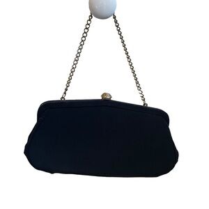 In very good condition black fabric evening bag with gold tone chain and clasp.