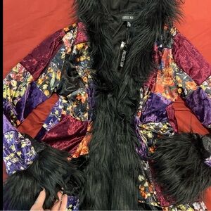 Dolls Kill x Current Mood Patchwork Fur Trench Coat