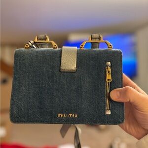 Authentic Miu Miu Denim Madras Bandoliera Shoulder Bag -