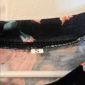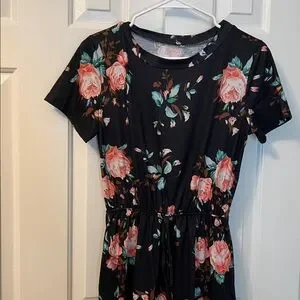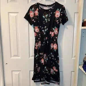 Black Floral Short Sleeve Dress Tie Waist Casual Size S