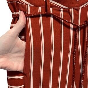 Lulumari Rust Striped Fly-Away Wide Leg Pants Tassel Belt M