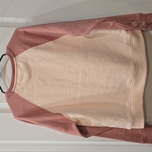Carhartt sweatshirt with cream body and brown sleeves. Casual and comfortable style.