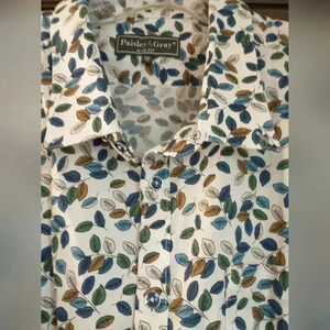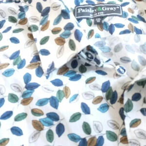 Men's Paisley & Gray Button Down Shirt with Leaves Size 19 XXL Slim Fit