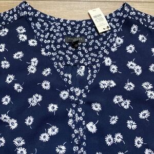 BNWT Talbots Petites Women’s Floral Sleeveless Top. Navy blue, white and light blue. MP.