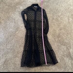 Zara Sheer Mesh Polka Dot Button Down Maxi Shirt Dress size Small