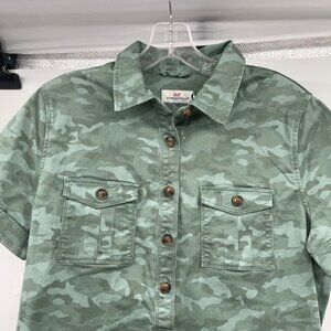 Vineyard Vines Womens Camouflage Shirt Dress Short Sleeve Green Size 6 New