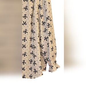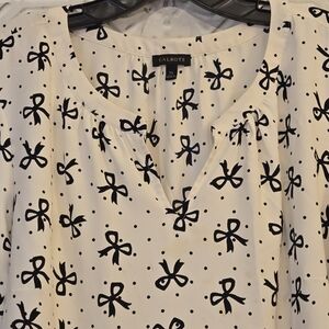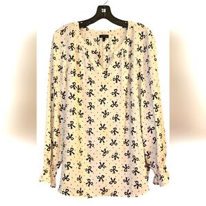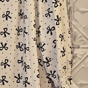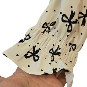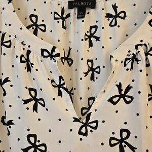 Talbots Smocked-Sleeve Bow Top Women's Size XL Casual Cottage Core Black/Cream