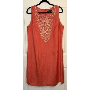Jessica Howard Womens Orange Linen Blend Dress Size 14W Golden Detail Resortwear