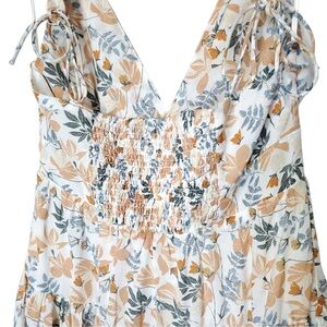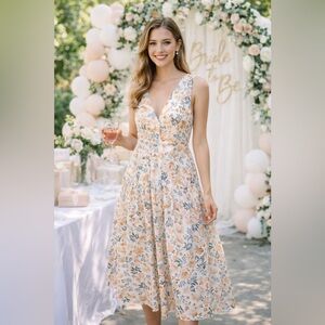 Joie Sleeveless Keyhole Tie Midi Summer Sun Dress White Orange Cotton Floral Size 8. Sleeveless.