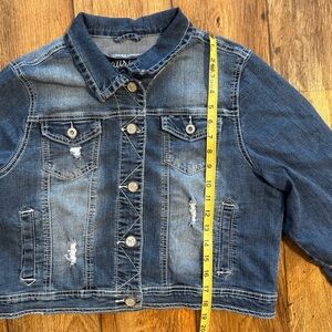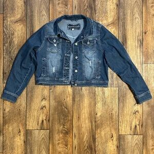 Maurices Dark Blue Distressed Jean Jacket - Size:XL