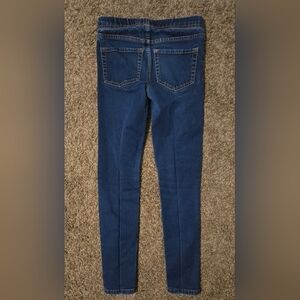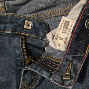 Stylish blue denim jeans. Perfect for casual wear. Girls set of 3 size 8 denim jeans. All different brands as shown in the photos. Easy to pull on and off one pair with elastic waist. One pair with snap buttons instead of regular buttons, and the last one is a clasp closure.