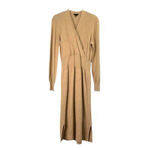 Ann Taylor knit cross v neck midi sweater dress Size M tan caramel neutral