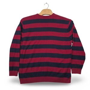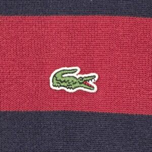 Lacoste, Crocodile, Preppy, Golf, Country Club, Big and Tall, Size 9, 4XL, Striped Sweater, Dark Academia, Casual Friday, Designer, Cotton Knit, Navy Red.
