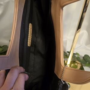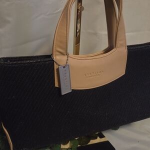 Reaction Kenneth Cole Black Woven Tote Bag Nude Structured Handles