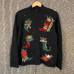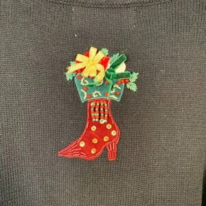 Vintage Heirloom Collectibles Sweater Womens Medium Boots Christmas Cardigan