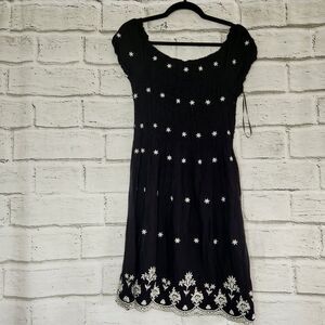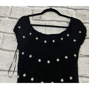 Love Tree Women's Black Floral Mini Short-Sleeved Dress L Stretch Embroidered