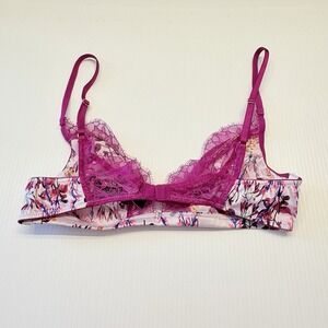 Victoria`s Secret Satin Unlined Wireless Plunge Bralette Size Small Floral NEW