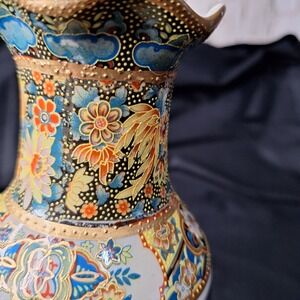 Vintage Satsuma Style Moriage Vase Madonna and Child Angels Gold Gilt Floral 8.5