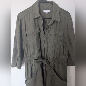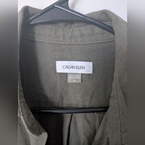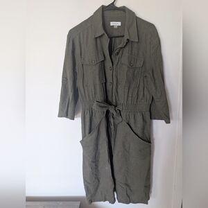 Calvin Klein Women's Dark Green Button Up Linen Dress