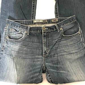 Stylish BKE jeans in a classic blue. Features contrast stitching and a back pocket design. Ideal for casual wear.