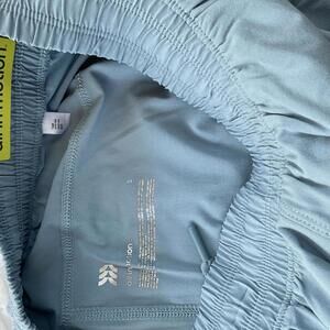 Light blue All in Motion run shorts in size Small. Features moisture-wicking fabric, odor control, quick dry technology, and 4-way stretch for comfort and flexibility. Elastic waistband for a secure fit. Unlined design ideal for running and activewear.