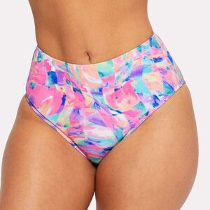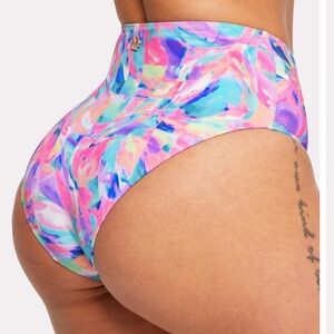 Stand out with this YITTY bikini bottom. Features a lively mix of pink, blue, and purple. Perfect for beach days.