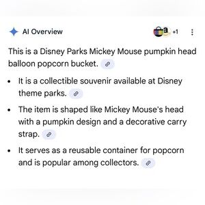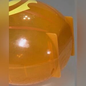 The Disney World Mickey Mouse Balloon Pumpkin Popcorn Bucket is a collectible item inspired by Disney's iconic character, Mickey Mouse. This unique popcorn bucket, featuring a cute Mickey Mouse balloon design with a pumpkin theme, is a must-have for fans and collectors alike. With its ties to Disney Parks and franchise, this item serves as a special memento from the beloved theme park, making it a perfect addition to any Disneyana collection. Stands about 11" high. Back opens and closes.