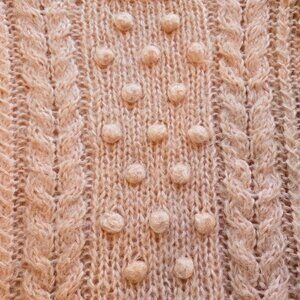 vintage sweater, Amherst Sport, peach sweater, 1980s fashion, cable knit, wool acrylic blend, medium size, retro style, bobble knit, shoulder pads, cozy knitwear, autumn outfit, fashion statement