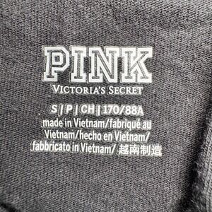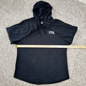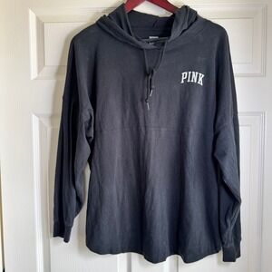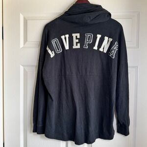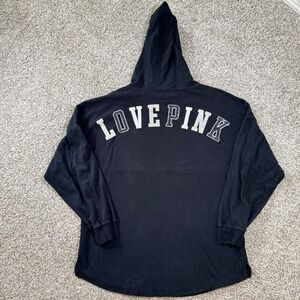 PINK Victoria's Secret Black Glitter Logo Hooded Long Sleeve Tee Shirt Womens S