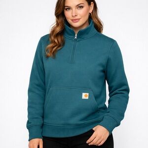 New Carhartt Women’s Teal Green Quarter -Zip Sweatshirt-M