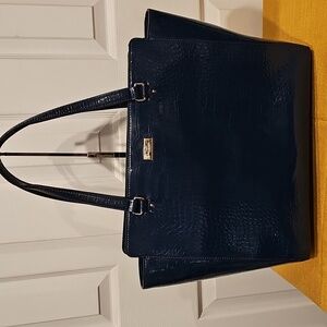 KATE SPADE PURSE ELISSA BRISTOL DRIVE CROC PETROL BLUE LEATHER SHOULDER BAG EUC