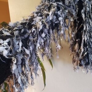 Luzabelle 3D Knot Knit Vintage 80s Black, White and Metallic Gold Fuzzy Comfy Iconic Fringe Sweater, Bohemian, Mob Wife, Iconic, Cozy, Indie Sleeze, Eclectic Grandpa,