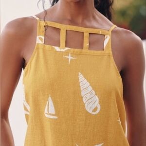 Celandine by Anthropologie Square-Neck Cutout Mini Dress, Maize Yellow & White S