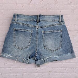 Stylish denim shorts with a frayed hem. Ideal for everyday wear.