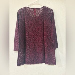 Ruby Ribbon Chantilly Lace Top in Burgundy NWT