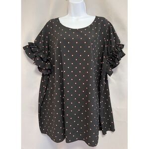 Lane Bryant Women's Plus Size 26 Blouse Top Short Sleeve Black Pink Polka Dot