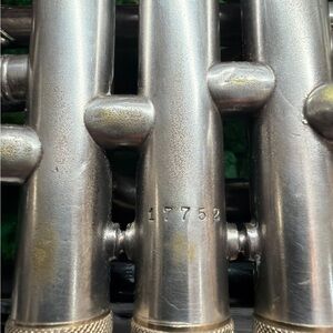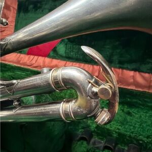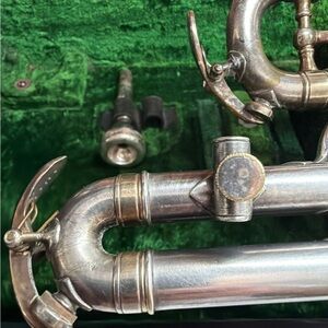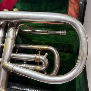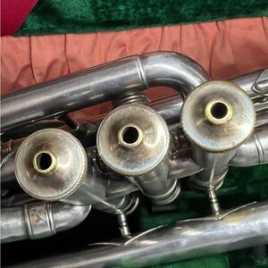 Completely cleaned and sterilized. All valves and slides match and function properly. Has had previous dent repairs and still has some small dings. All original, comes with original case. I do not have the original mouthpiece.