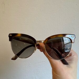 Stylish sunglasses featuring a chic brown frame with gold accents. Perfect for adding a touch of elegance to any outfit.