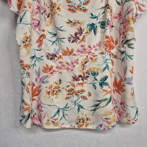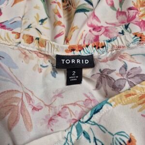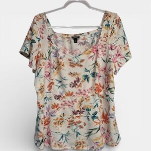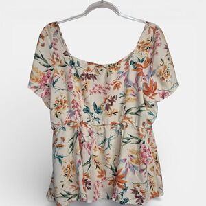 Torrid Womens Size 2 Floral Square Neck Flutter Sleeve Blouse Cream Orange Rayon