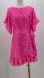 Glam Hot Pink Foil Dress – Waist Tie, Ruffle Hem, Statement Party Look Size 10