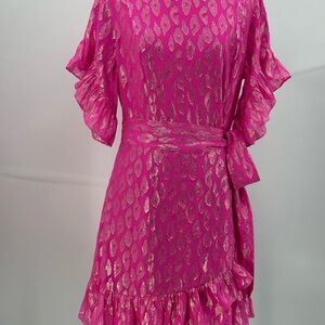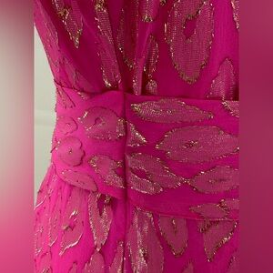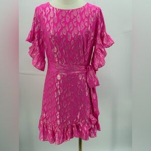 LILLY PULITZER Hot Pink Metallic Foil Wrap Dress Ruffle Hem Cocktail Dress